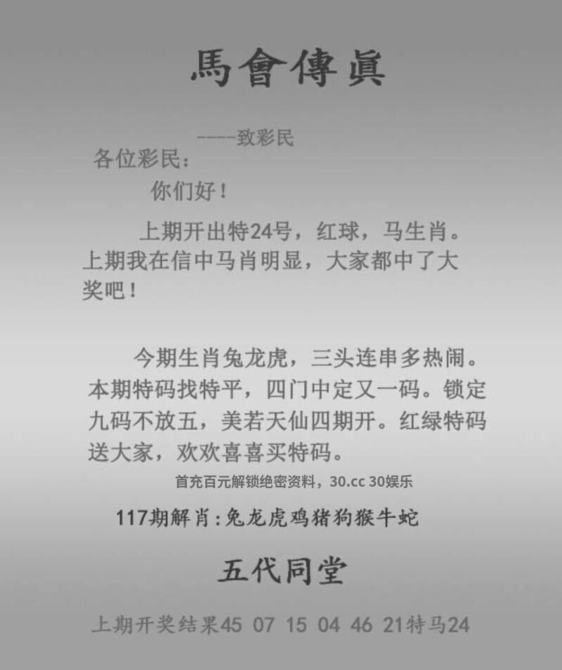 117期马会传真: 今期生肖兔龙虎,三头连串多热闹 本期特码找特平,四门中定又一码 锁定九码不放五,美若天仙四期开 红绿特码送大家,欢欢喜喜买特码 五代同堂 解:今期生肖兔龙虎,解野兽生肖蛇虎兔龙鼠猴,红绿特码送大家,解红波 特围生肖:蛇狗羊猪牛龙兔虎猴 |